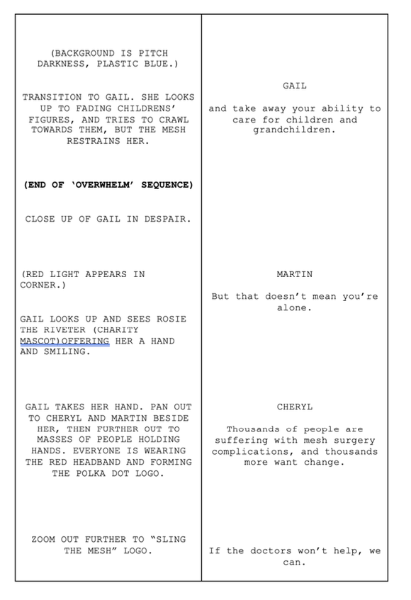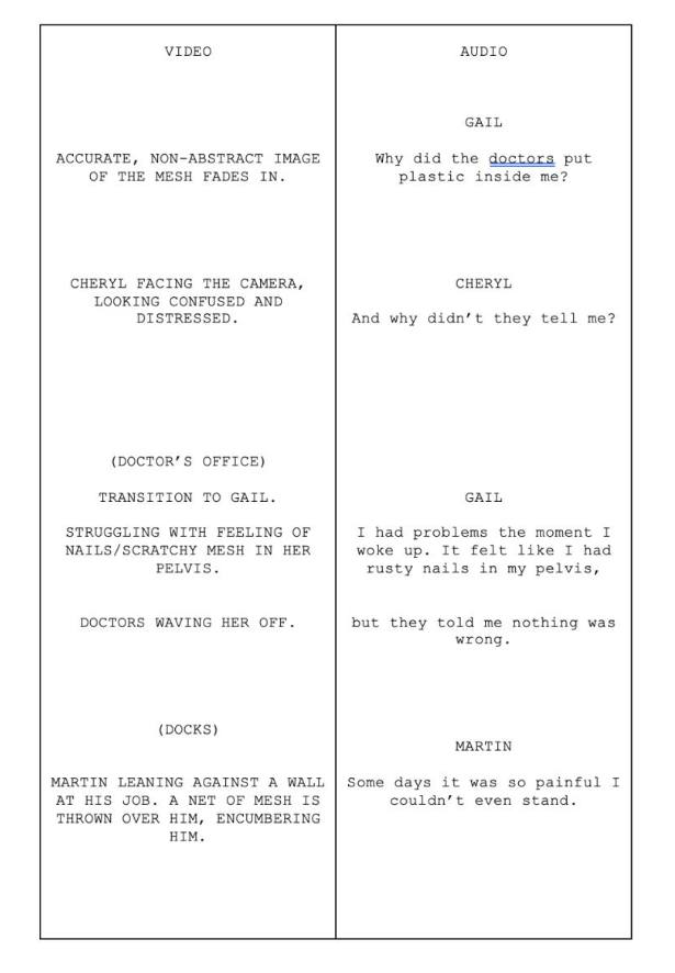 These are the voice over scripts for planning how the qualitative data provided by interviews could be turned in a story.